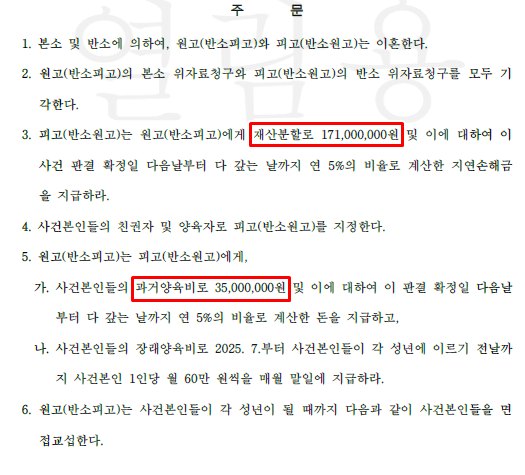 Significant Reduction in Property Division Amount: The plaintiff demanded approximately ₩275 million, but the court finalized it at ₩171 million, approximately ₩100 million lower.
