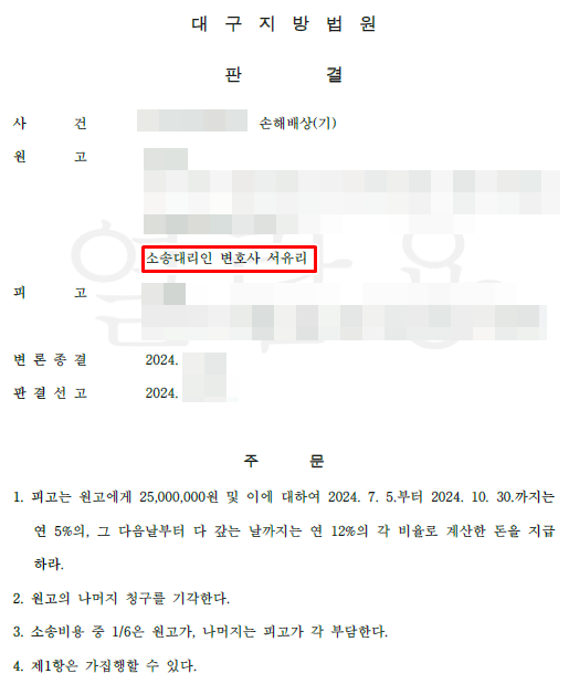 1st Lawsuit: The defendant (the adulteress) had a relationship with the spouse since 2016, and as a result, a judgment was finalized in 2018 ordering her to pay the plaintiff 20 million won in alimony.